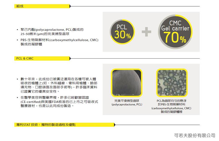 ● 是經歐盟認證及美國食品藥物管理局核准的聚合物,已使用在眾多醫療產品上逾 20 多年
