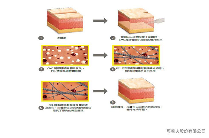 ● CMC 在注射後提供了即時填充/皺紋修復的功能